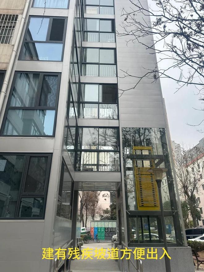 住户出了电梯就能进自家阳台,不用再爬半层楼,以往加装电梯常见的错层问题这下彻底解决了。