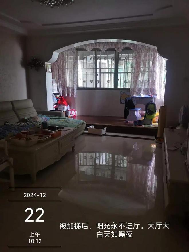 也就是在加装电梯前,给每户都往外扩了 8 平方米的阳台,也包括了一楼。