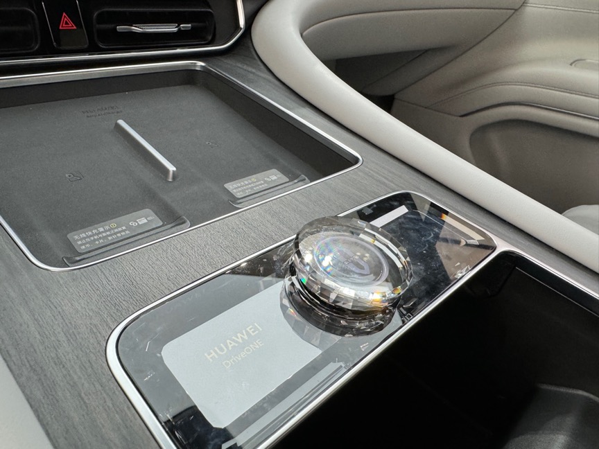 中控台的设计没什么新鲜感,就是如今新能源车最惯用的连屏。不过这几块屏幕的尺寸都不一样,液晶仪表的尺寸为12.3英寸,较小;中控屏的尺寸为15.6英寸,跟问界其他车型的中控屏尺寸一样;副驾驶娱乐屏的尺寸为16英寸。同时,也加入了AI小助手,跟蔚来的nomi差不多。