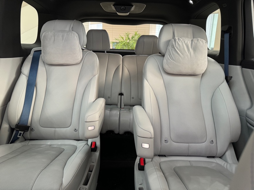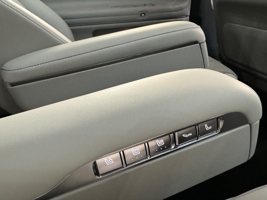 当然,最舒服的座椅还是第二排右侧的座椅。虽然看起来其貌不扬,但是配置直接堆满。不仅有这个级别必须有的一键躺平模式,还支持加热、通风、按摩等一系列功能。