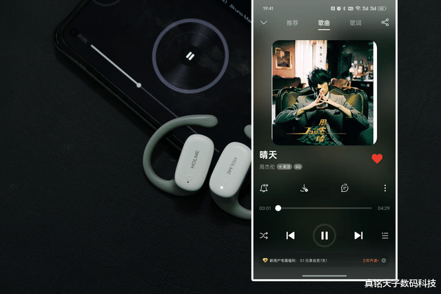第二首用《周杰伦》的晴天来测试,对于中频的歌曲来说,这款耳机也能表现出非常不错的解析能力,该有的振感、音乐的清晰感都相当给力。对于一款开放式蓝牙耳机来说,它已经相当不错了。