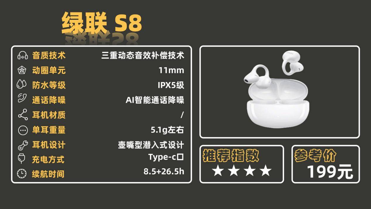 绿联S8这款耳机从外壳到耳机,从视觉上由内而外都透露着一股简单和朴实,中规中矩的外观,看起来像个耳机。佩戴体验上,虽然耳机自重轻盈,但耳夹力度较大,无法达到无感佩戴,佩戴时间稍长,会开始产生不适感,偶尔有耳机发烫的现象。