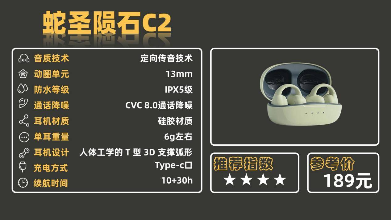 蛇圣陨石C2这款耳机外观像个长长的蛇胆,外壳的磨砂质感拿在手上很舒服,耳机仓内部也做了磨砂处理,不容易藏污纳垢好打理。佩戴下来,上耳相对比较轻松,支臂柔软,好佩戴,但这款耳机的自重偏重达到6g,适合办公室或者图书馆一类不需要剧烈运动的场合下佩戴。