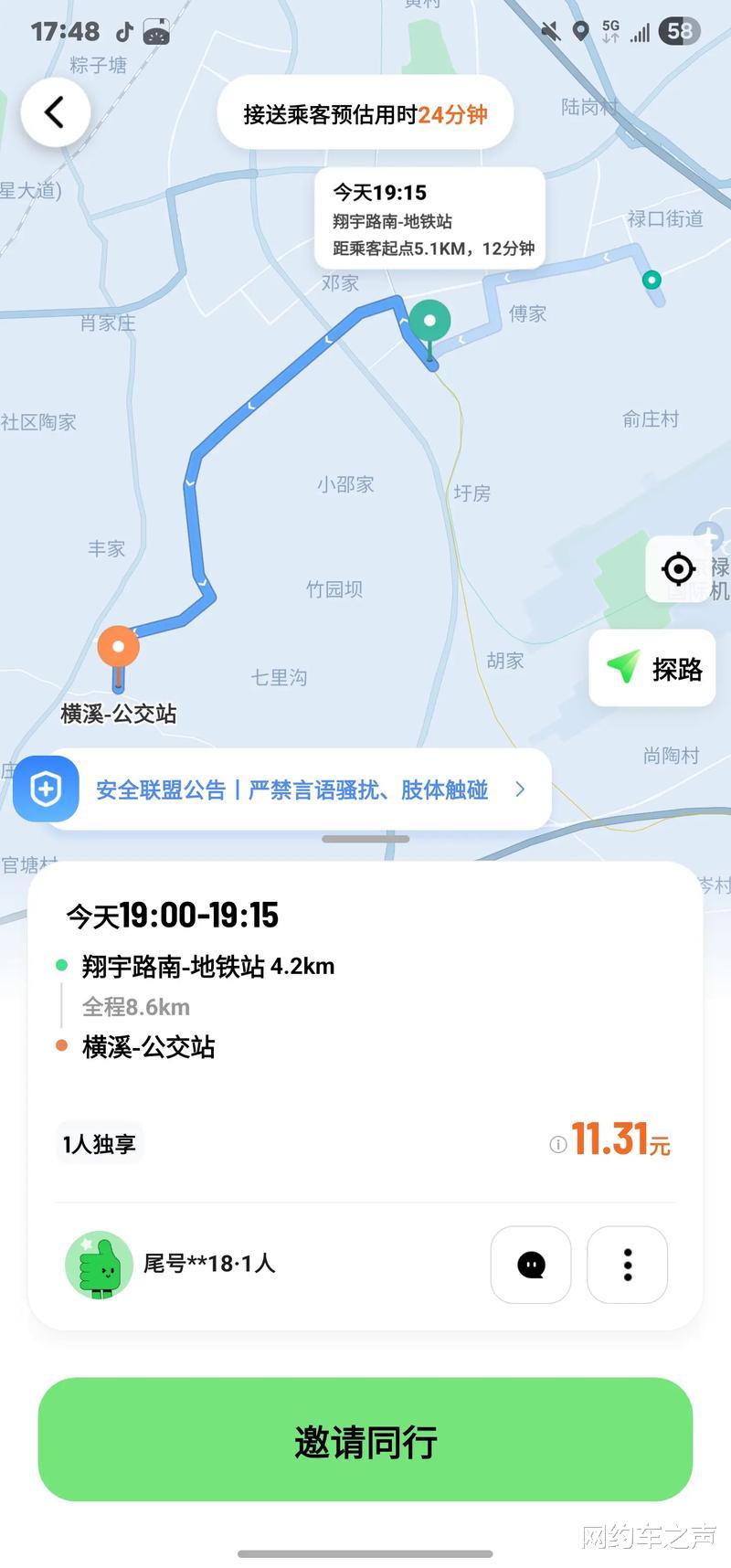 比如原本十几分钟的路,碰上临时拥堵,时间翻倍了;比如目的地不好掉头,接驾空驶更远了;再比如订单看着不长,但全是红绿灯和慢路段。