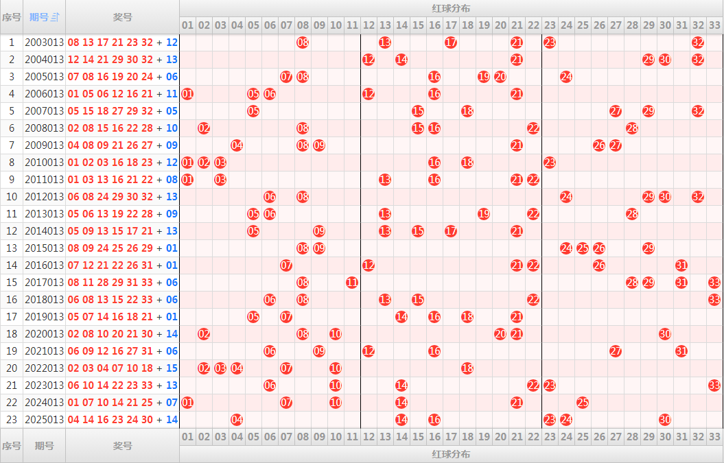六、历史同期,红球开奖号码和走势图(历史数据演示):