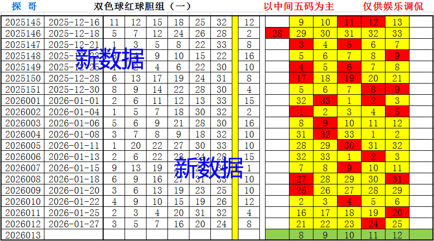 自双色球第013期开始,胆组一更换新数据,希各知照。