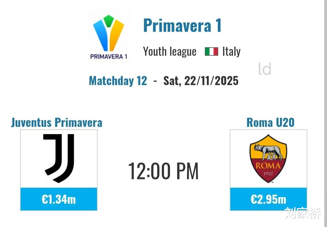 11月22日晚,意青联赛第12轮,排名第13的尤文青年队将坐镇主场迎战排名第2的罗马青年队。