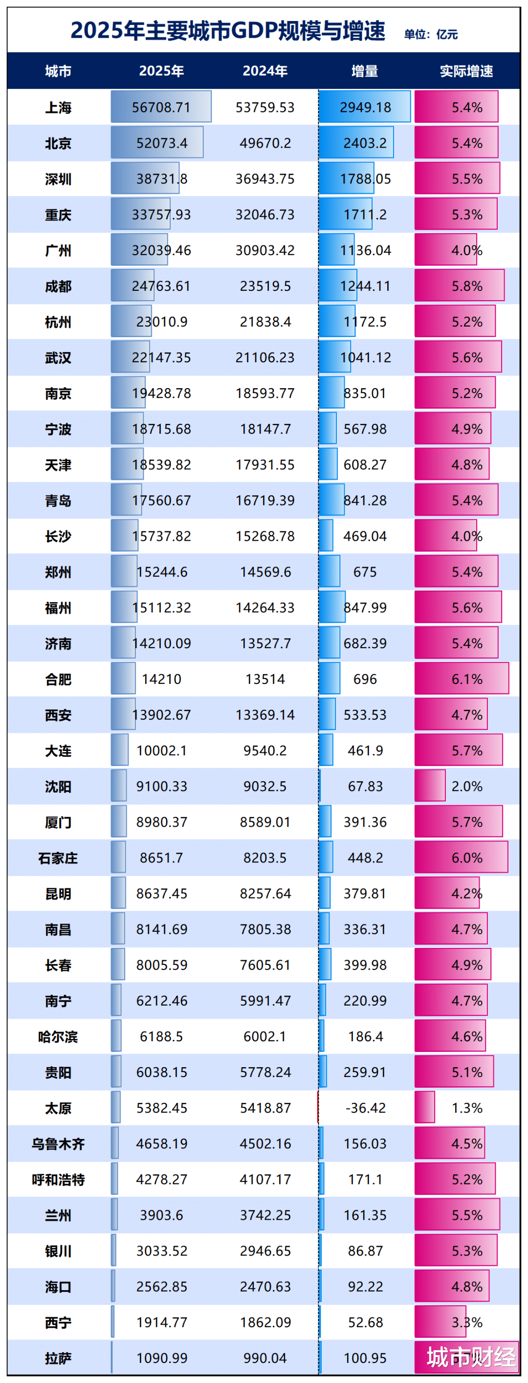 2025年实际增速4.7%,比全国平均增速低0.3个百分点,增速位居全国主要城市(直辖市+副省级城市+省会与首府城市)倒数第十。