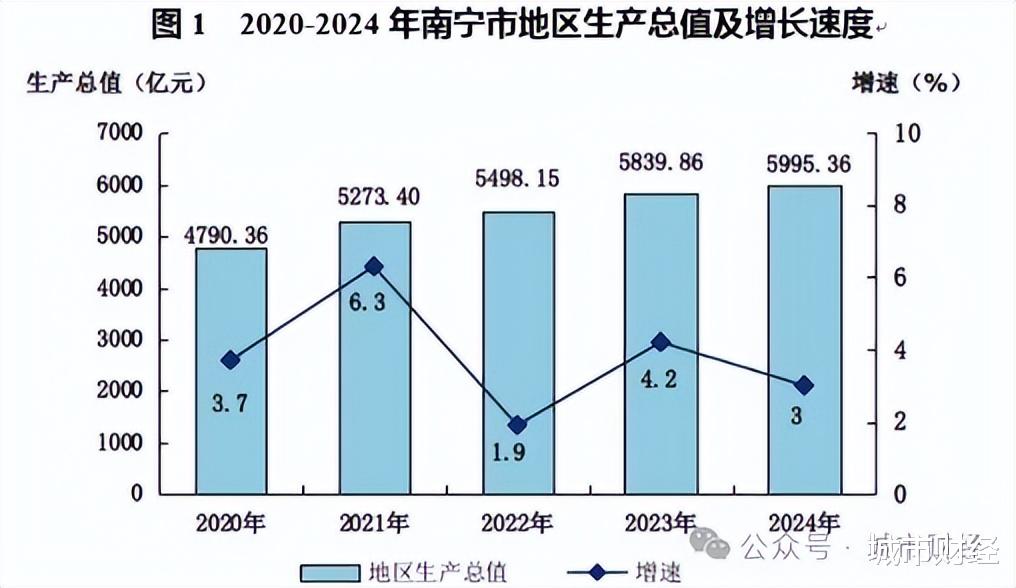 2024年黑天鹅彻底结束,全国GDP增速稳步在了5%,而南宁的增速则降至3%,跑输了2个百分点。