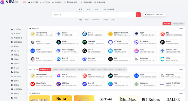 (发现AI的拼音) 非常全的AI合集网站,据称超过了2万的AI软件或者AI应用都可以在这个上面查的到,最主要的是还有免费的AI教程,很适合新手小白上手。