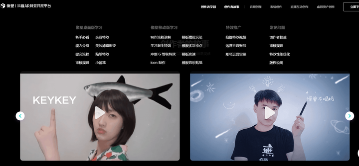 5.像塑AR特效开放平台 网址:抖音特效师认证|像塑-抖音AR特效开放平台