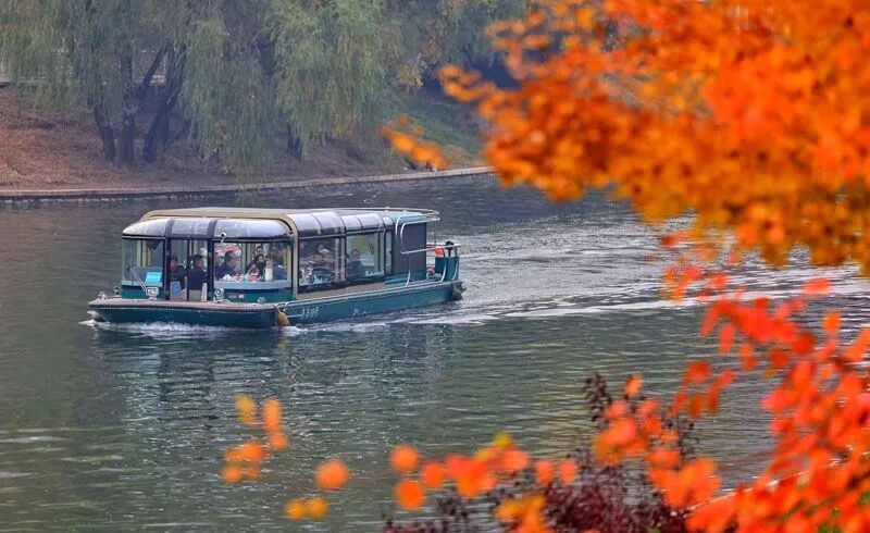 航线以“四季有景”为设计理念,打造移动的水上景观长廊。秋天,皓月桥边的金叶水蜡、水杉等橙红交织。春日,河畔的山桃、碧桃竞相绽放,二月兰、波斯菊等次第开放。