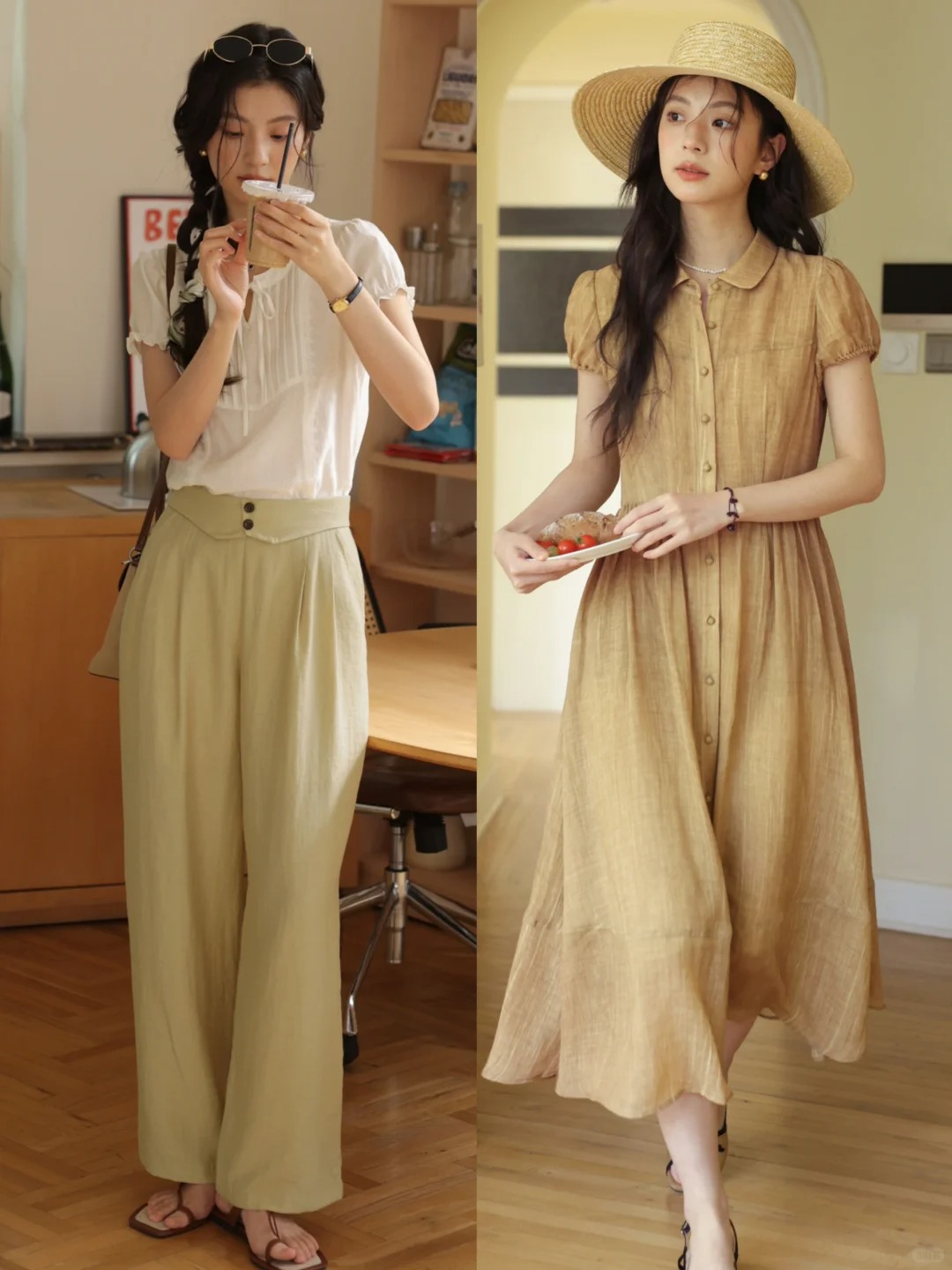 再来说说配色。柔和的莫兰迪色系是文艺复古风格的经典选择,它给人一种温柔又宁静的感觉。这样的配色不仅非常适合夏天,还能让你的整体造型看起来更加高级。比如一款绿色连衣裙,穿起来就像是夏日的清风,清爽又舒适。再搭配上一些小饰品,比如珍珠耳环或者简约的项链,整个造型就更加完美了。
