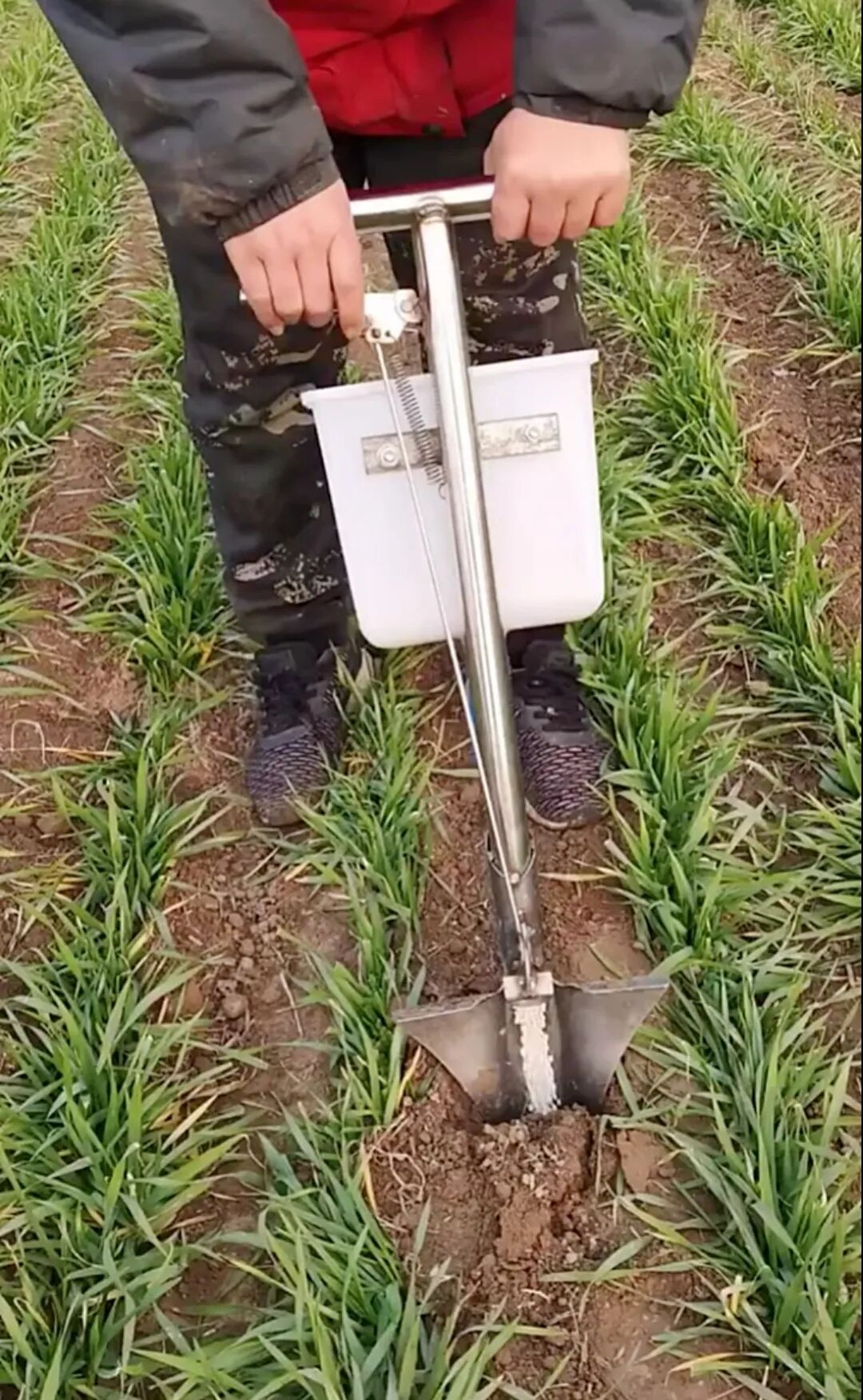 比如:小麦追施碳酸氢铵施肥,具体在小麦行距直接,施肥深度在7公分左右施入,然后在覆盖吐。现在用的施肥机,基本都是可以调节施肥深度的。
