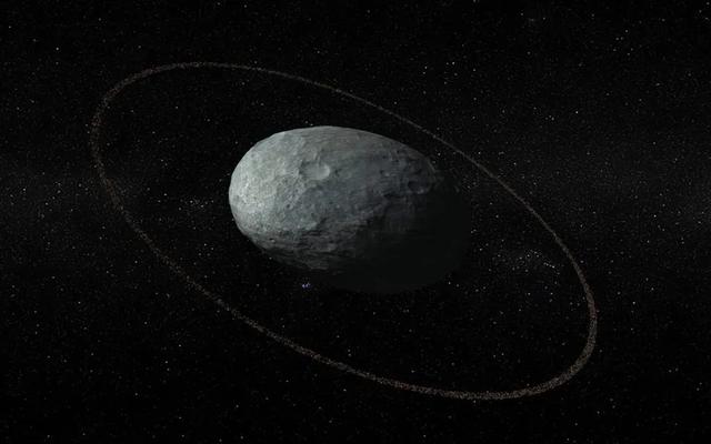 戒指在海王星以外的柯伊伯带中运行的矮行星Haumea很有意思,细长形状的它,有两个卫星,并且自转速度相当快,一天只需要地球的4个小时,是太阳系中旋转最快的大型物体。