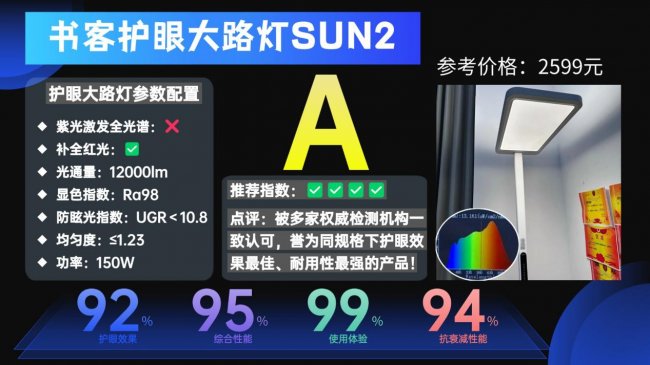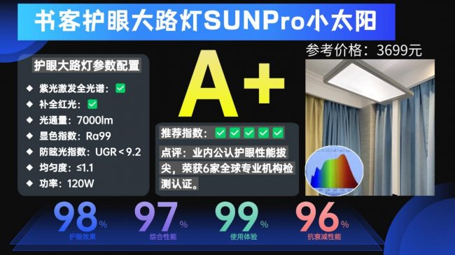 护眼大路灯第一名全面解析:书客护眼大路灯SUN2;被多家权威检测机构一致认可,誉为同规格下护眼效果最佳、耐用性最强的产品!