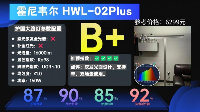 护眼性能:符合RG0防蓝光等级和无可视频闪标准。
