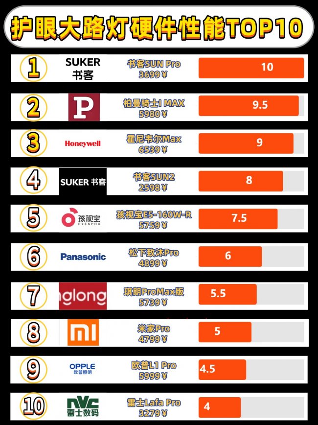 什么牌子的大路灯护眼好?大路灯推荐排行榜前十名包括:书客、霍尼韦尔、孩视宝、雷士等品牌,其中书客SUN2是目前同规格下最护眼效果最好、耐用性最强的护眼灯,位居第一。