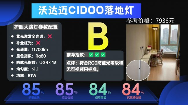 护眼大路灯第四名:沃达迈CIDOO落地灯;符合RG0防蓝光等级和无可视频闪标准。