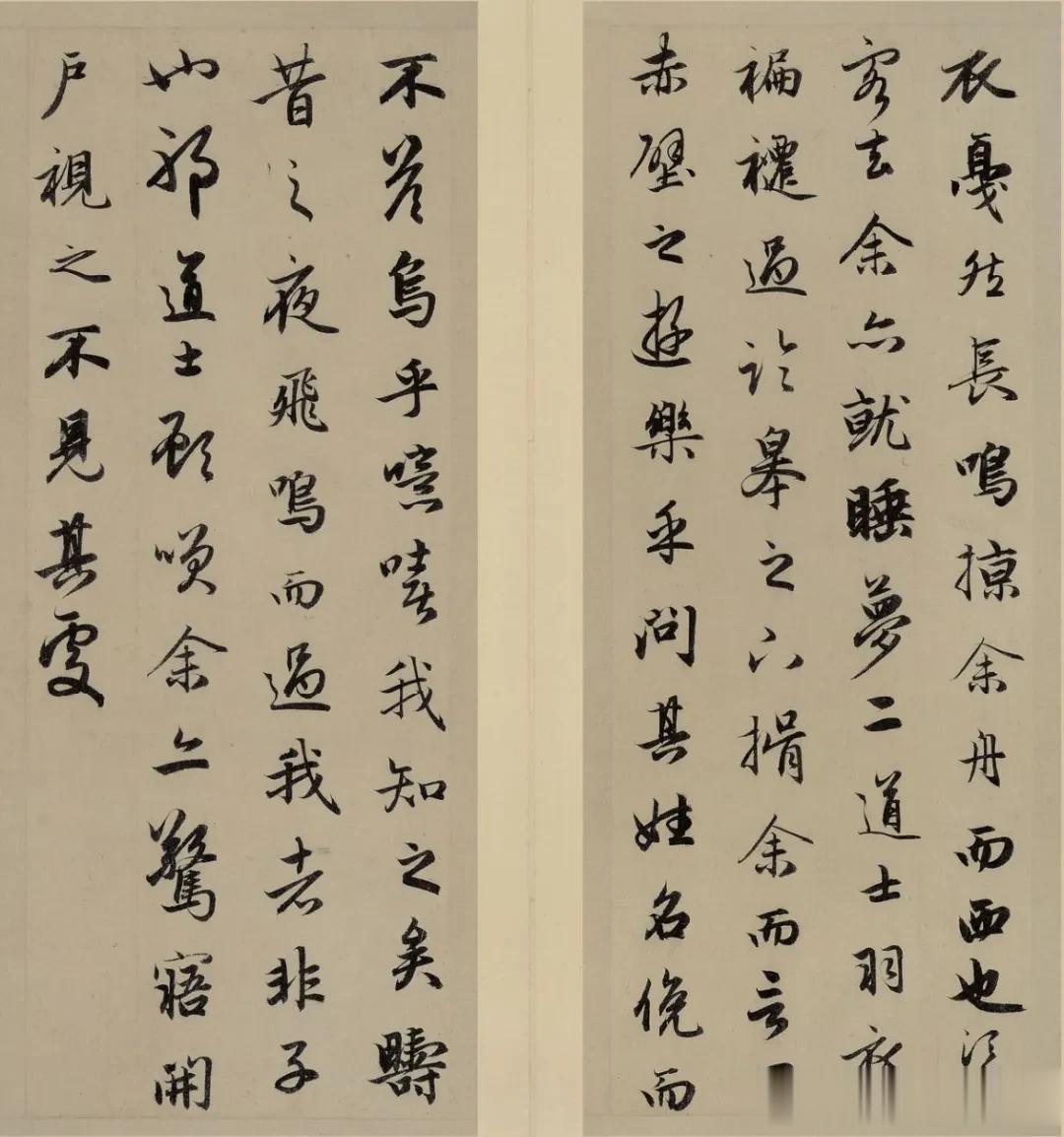 须臾客去,予亦就睡。梦一道士,羽衣蹁跹,过临皋之下,揖予而言曰:“赤壁之游乐乎?”问其姓名,俯而不答。“呜呼!噫嘻!我知之矣。畴昔之夜,飞鸣而过我者,非子也邪?”道士顾笑,予亦惊寤。开户视之,不见其处。