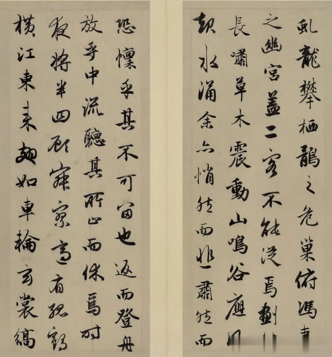 于是携酒与鱼,复游于赤壁之下。江流有声,断岸千尺;山高月小,水落石出。曾日月之几何,而江山不可复识矣。予乃摄衣而上,履谗岩,披蒙茸,踞虎豹,登虬龙,攀栖鹘之危巢,俯冯夷之幽宫。盖二客不能从焉。划然长啸,草木震动,山鸣谷应,风起水涌。