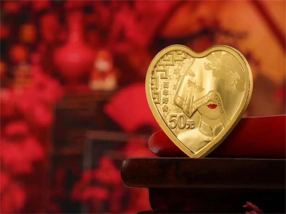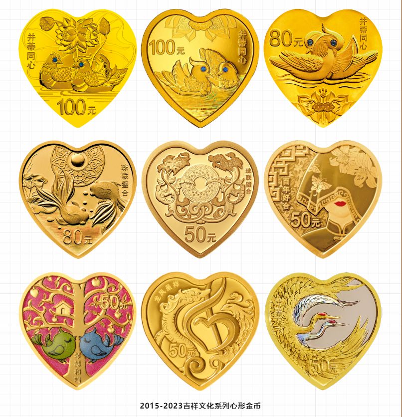 2024年,吉祥文化“美好爱情”主题继续创新,首次发行心形双金属币,美好爱情,心心相印。