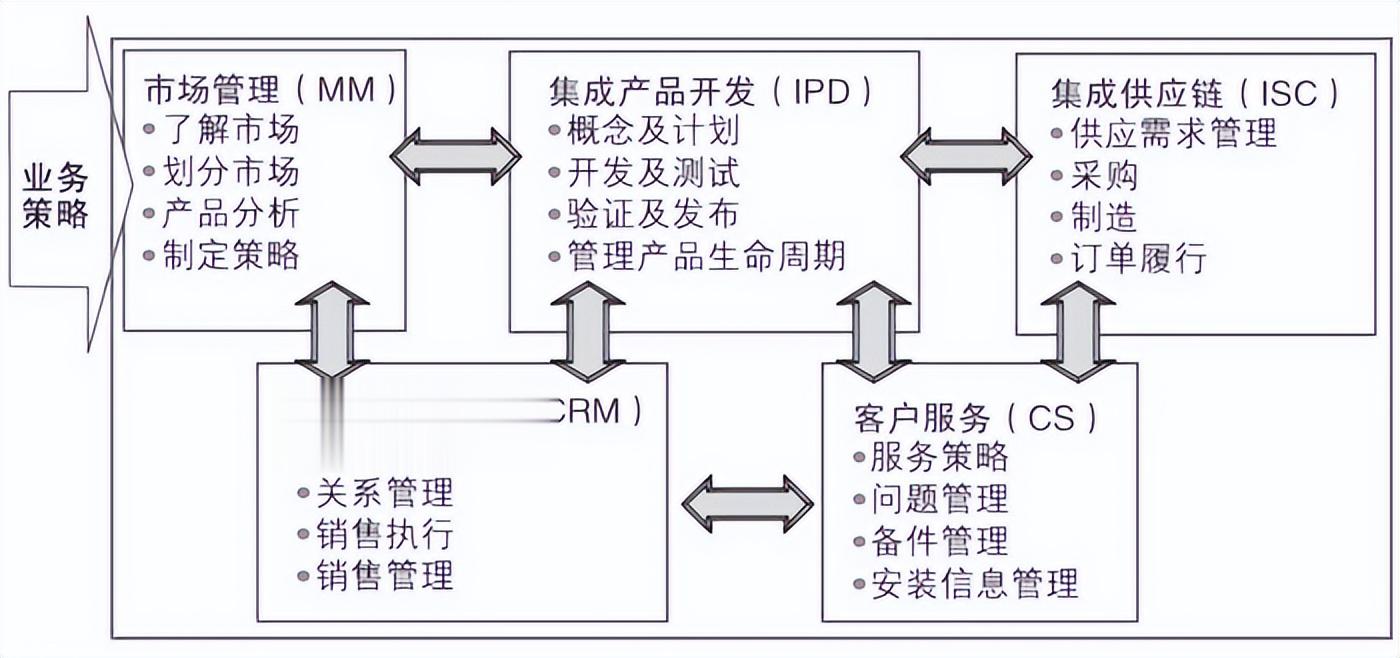 为了支撑客户层面的三大策略,必须在内部流程层面建立和优化高效支撑策略执行的四大核心流程体系。该体系包括制定高效的客户需求管理流程(OR)、基于客户需求的产品开发流程(IPD),建立针对大客户的直营模式和针对中小客户的渠道模式,以及制定为加快客户响应速度的问题解决流程(ITR)。