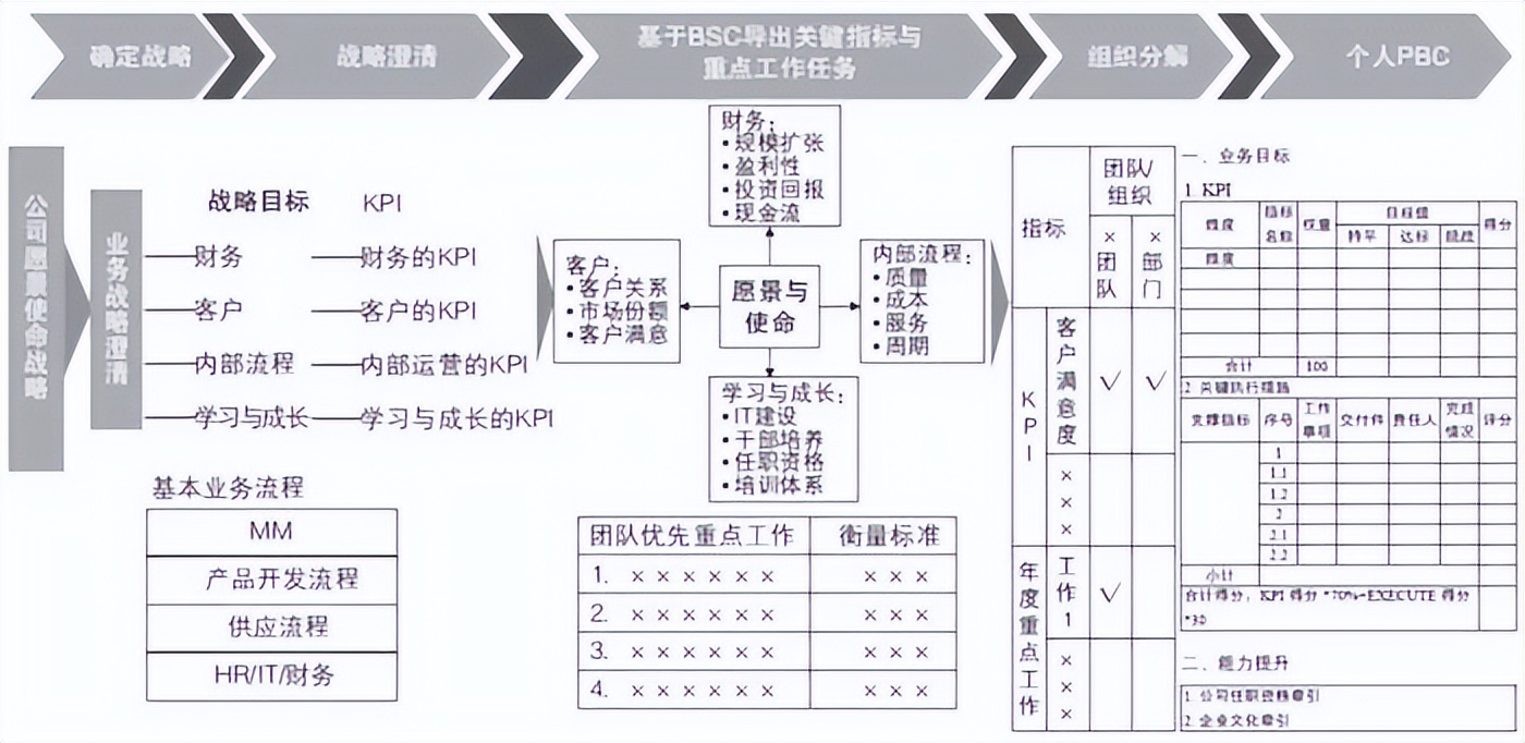 由此可以看出,BEM 的优点是结构化比较好,而其关键解码逻辑还是基于平衡计分法,只是增加了一些新的辅助工具,用以适当提升解码结果(即重点工作和考核指标)的质量。因此,本文重点介绍基于平衡计分法的战略解码方法(BSC)。