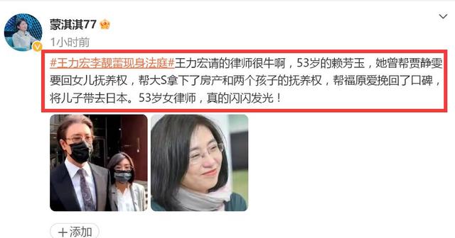 赖芳玉接手王力宏离婚案后,王力宏的口碑也是肉眼可见的飙升,评论区满是对李靓蕾的吐槽——