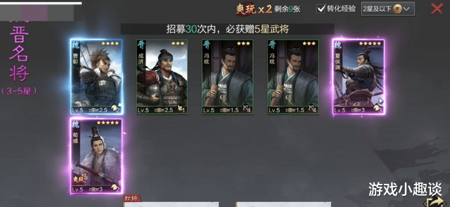 而且这些抽卡机会,官方直接让你爽玩2次,只要抽出一个五星武将,前10个都免费再送一个同阵营武将的抽卡机会,而且是5星!