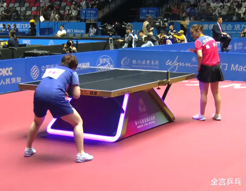 比赛开始后,两位运动员在场上打得比较谨慎,毕竟二人原本就年龄差距很大、相遇机会不多,新周期陈梦也长期高挂免战牌,所以这次是名副其实的遭遇战,不过中间段以后小将发动的速度更快,逐渐打出了自己的锋芒,陈梦状态掉线最终以5-11先丢一局。