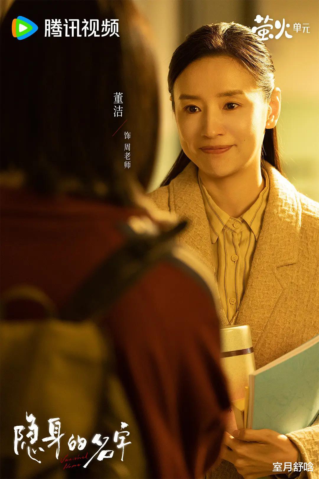 董洁在剧中第一次出场,以周芸的身份,她是任小名和柏庶的班主任,她温柔如春风,给了任小名很多的温暖,像光一样照在她身上。她热爱读书,文学造诣很深厚,她让任小名知道了梦想的样子,让柏庶收获了力量感。