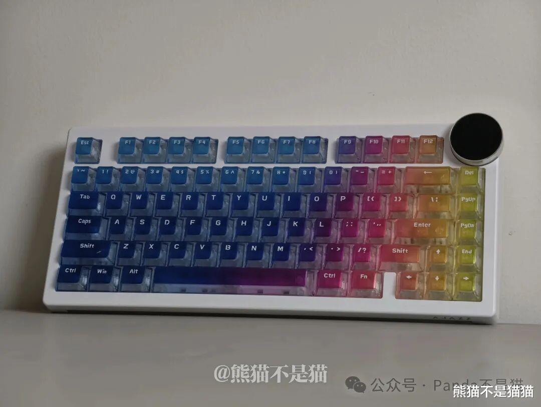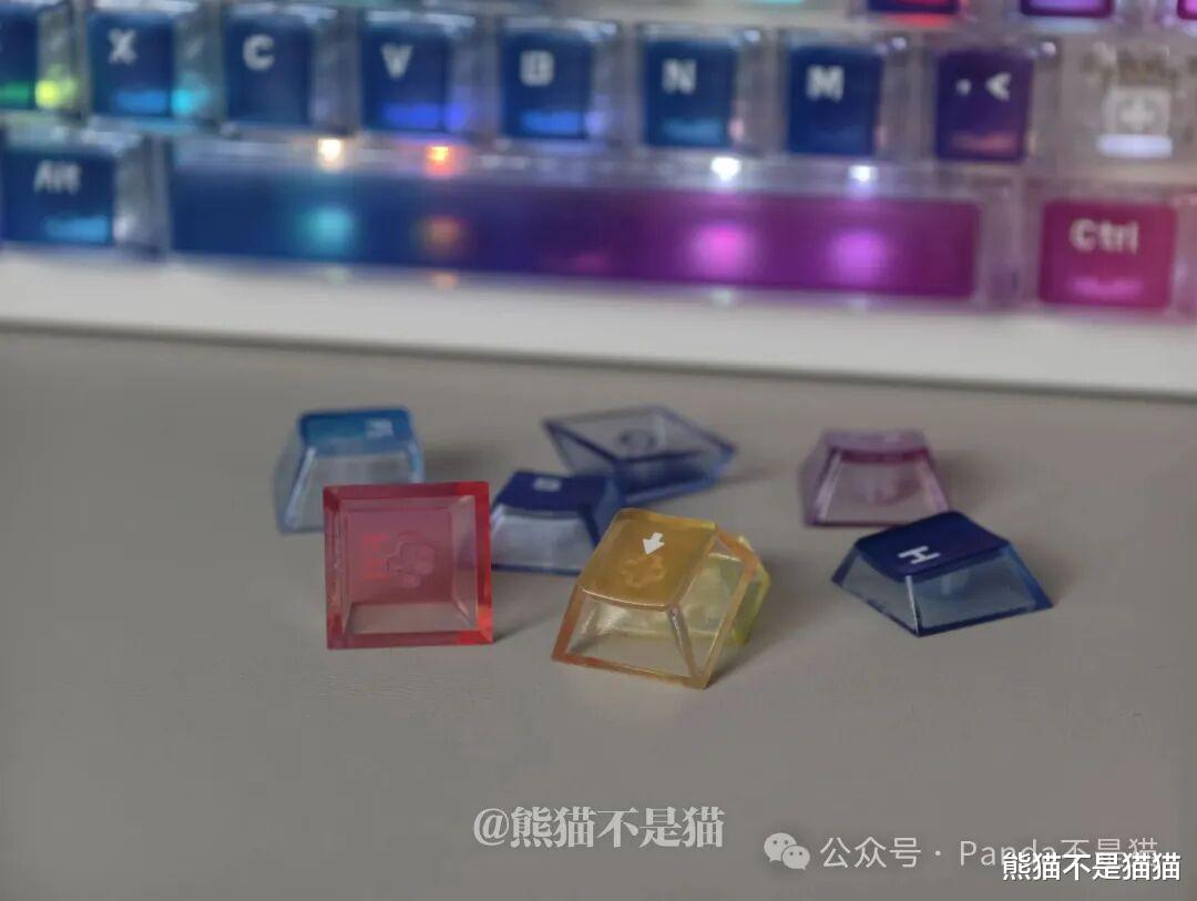 之所以选择琉璃樽其实就是为了这套渐变色的半透键帽以及它的轴体,轴体后面再说,先看键帽。