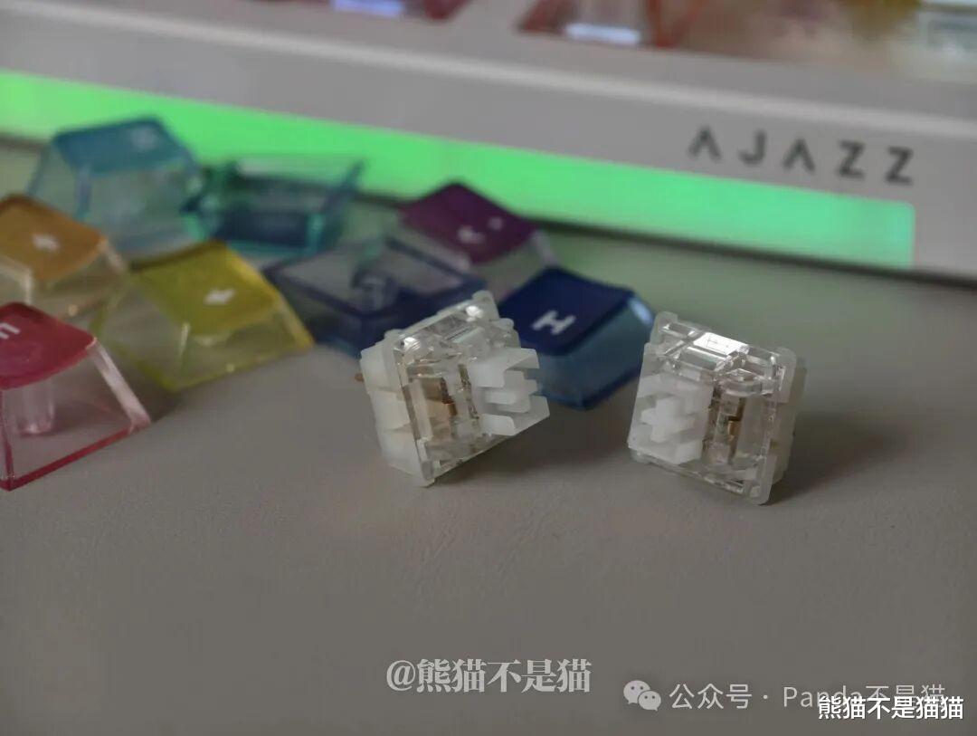 配置方面,这次AK820 V2Pro提供了白桃轴和荔枝轴两种选择。其中荔枝轴的手感更为利落,敲击的声音配合PC键帽非常清脆,更适合纯游戏党使用,而白桃轴则是兼顾了打字和游戏,更注重触发效率,总行程更短。