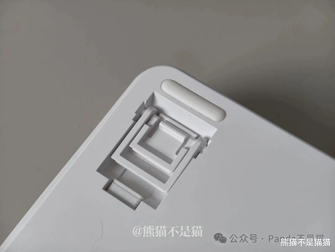 背面带有三段式的支架,同时在左侧支架做了USB接收器的收纳仓,收纳仓带有磁吸设计,免得大幅度拿起时接收器掉落。