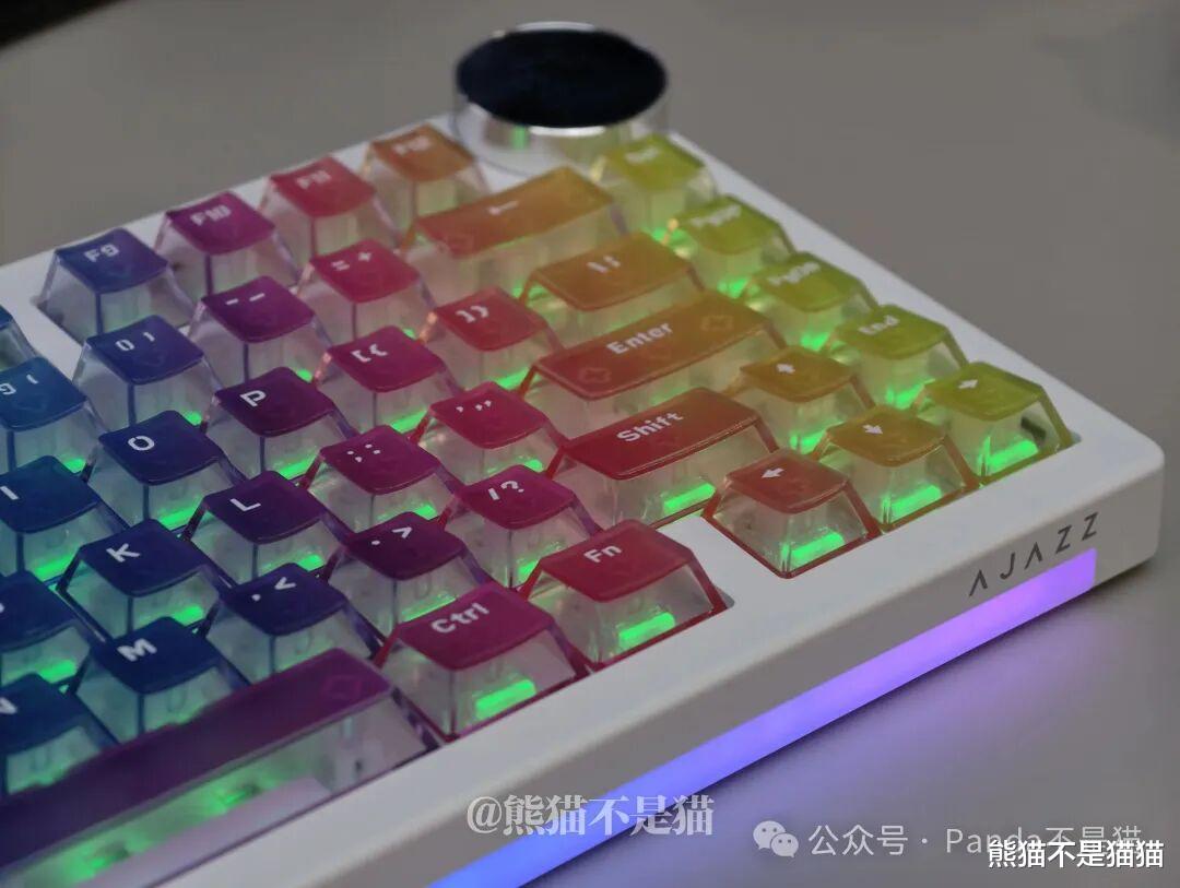 因为透光性强,所以即便是白天状态下这套键盘的灯效也是非常夸张,色彩鲜艳的键帽加上RGB灯光,整体的视觉效果非常强,喜欢“光污染”的应该会一眼爱上。