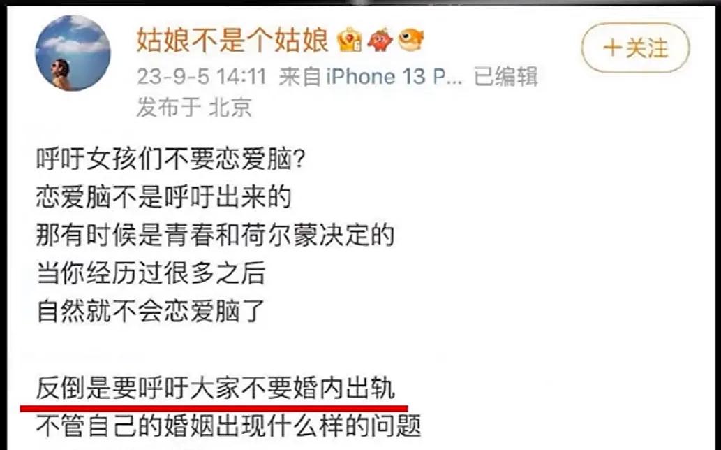 齐溪在宣传自己的电影时呼吁女孩子们别做恋爱脑并且还上了热搜,而张婉婷就随即发文称“反倒是呼吁大家不要国内出轨”。