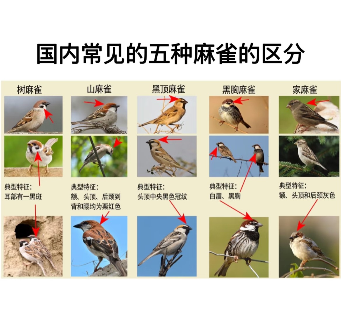 这五种麻雀在形态特征上有很大的区别,所以大家才会觉得现在看见的麻雀和小时候的不一样。