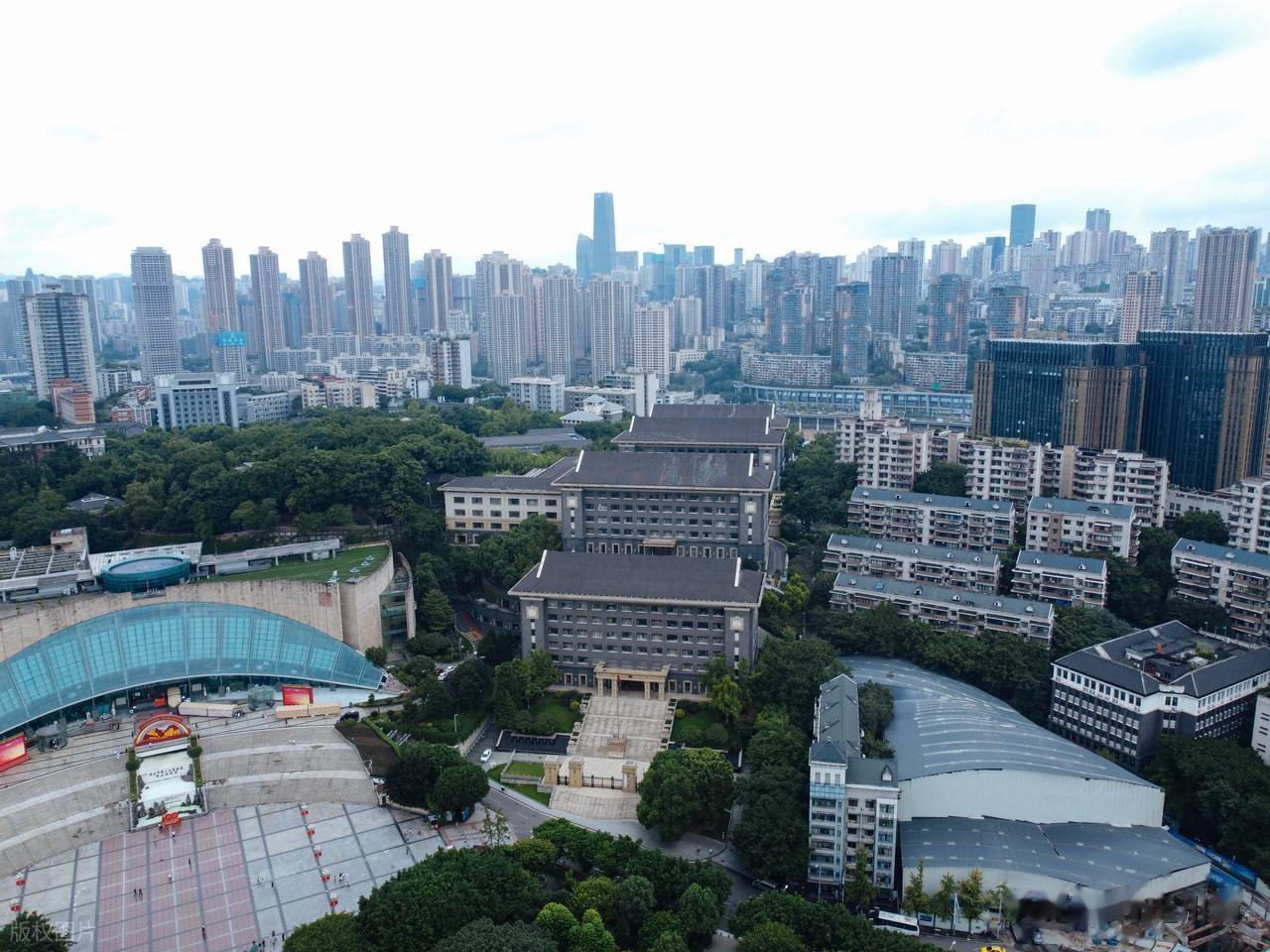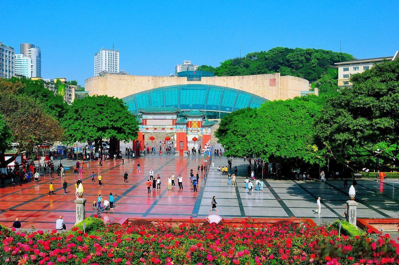 这道弧线其实是三峡大坝的缩影,而巨大的玻璃幕墙则象征着奔腾的长江。它没有选择“拔地而起”去和大礼堂争高低,而是选择了“后退与收敛”。它像是一棵从巴渝大地里长出来的“大树”,根扎在土里,叶向着未来。这种“以退为进”的设计,反而成就了重庆城心最和谐的景观。
