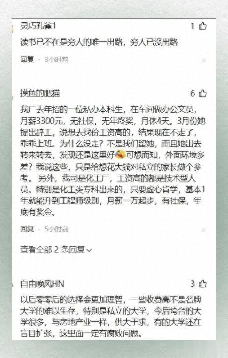 然而现实却给了大家一记响亮的耳光。就像有人提到的,一个同事供孩子读二本冷门专业,花了十几万,孩子毕业后工作难找,工资还不到四千,孩子自己都后悔,觉得大学四年学的东西在职场上根本用不上。这就是很多普通家庭面临的痛点场景,辛辛苦苦供孩子读大学,最后却看不到回报,心里的焦虑和无奈可想而知。