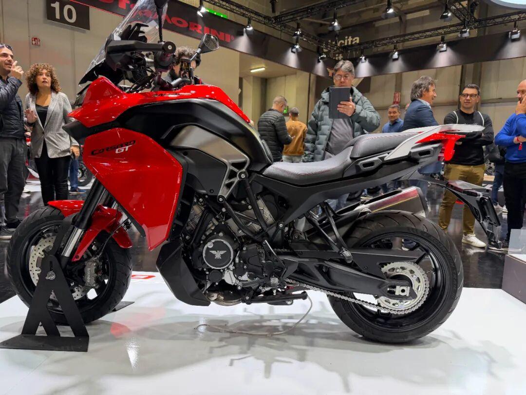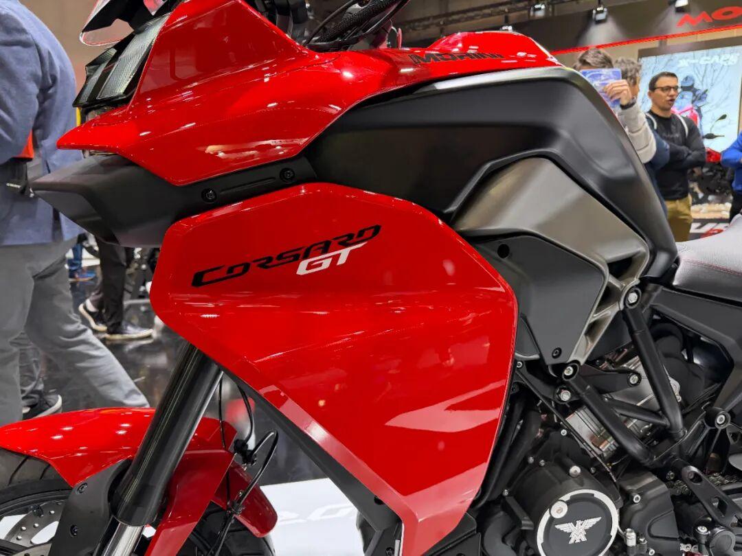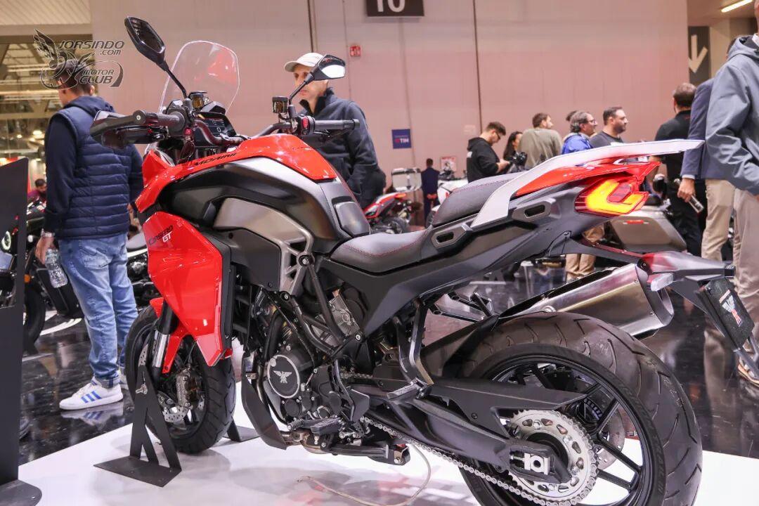 动力部分,Corsaro GT 搭载的V型双缸发动机是其血统纯正的有力证明。这台发动机采用90°夹角设计,配备干式油底壳与反向旋转曲轴,实际排量为749cc,预计最大功率为70.5kW,约合96匹最大马力,并标配滑动离合器。