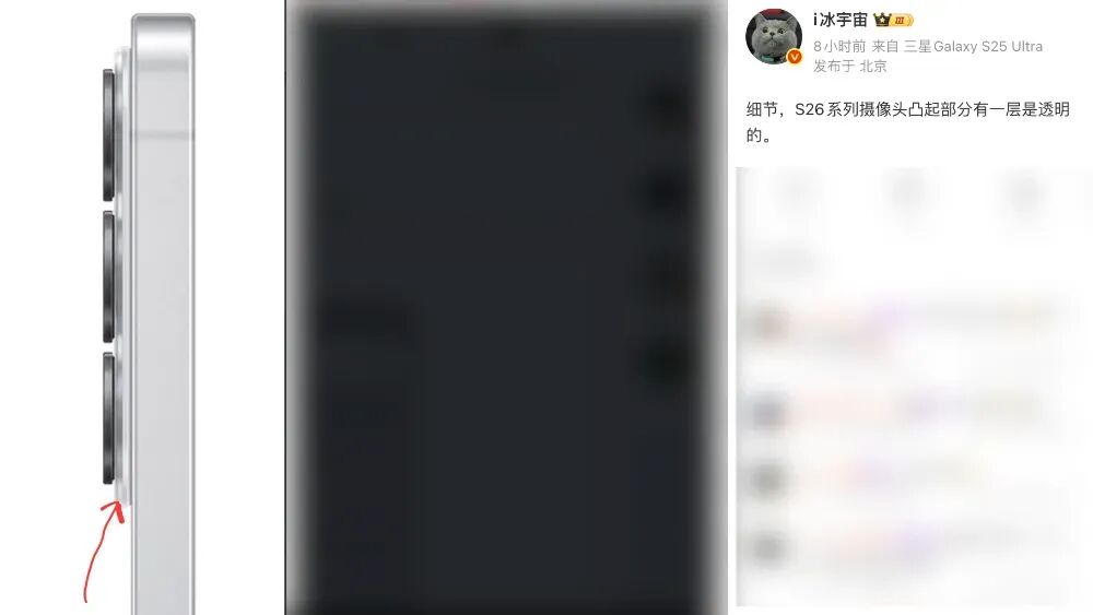 同时,博主@i冰宇宙 的消息显示,S26系列摄像头凸起部分有一层是透明的。