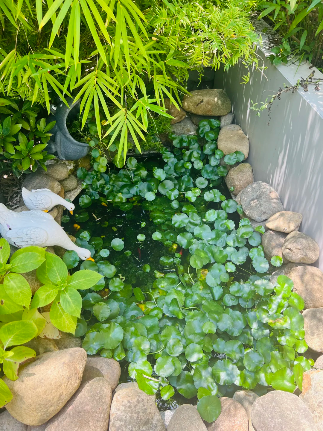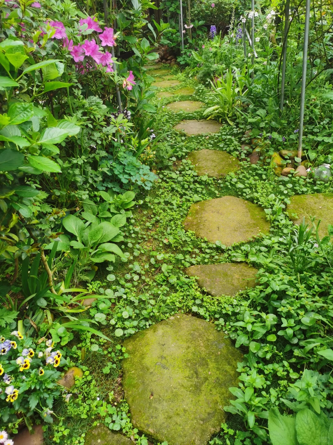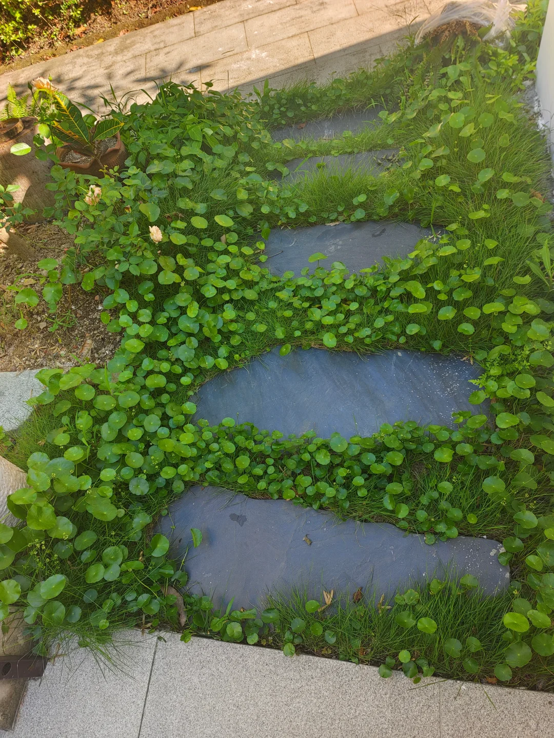 院子已经被铜钱草“入侵”,石板铺的小路,每道缝隙里都钻出铜钱草的嫩芽,越长越密,如今连石板都快看不见了。