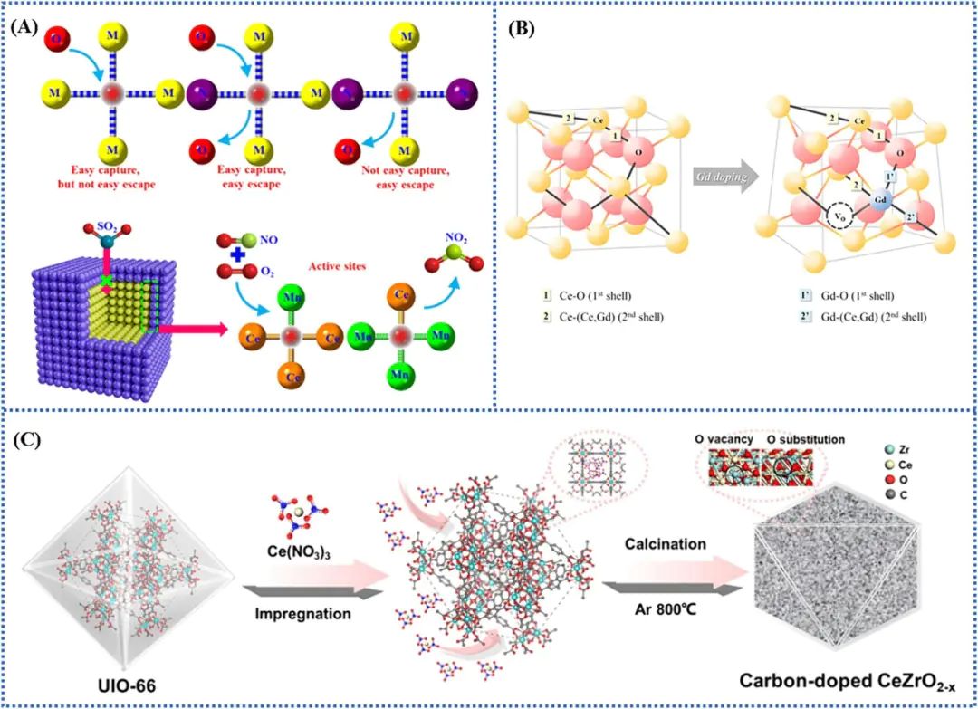 除了掺杂手段,/。例如,高温煅烧可在保持晶格框架的同时控制氧空位密度,而酸碱处理不仅引入氧空位还改变材料表面酸碱性,从而优化吸附性质。此外,外场外刺激方法也被利用来动态调控氧空位。
