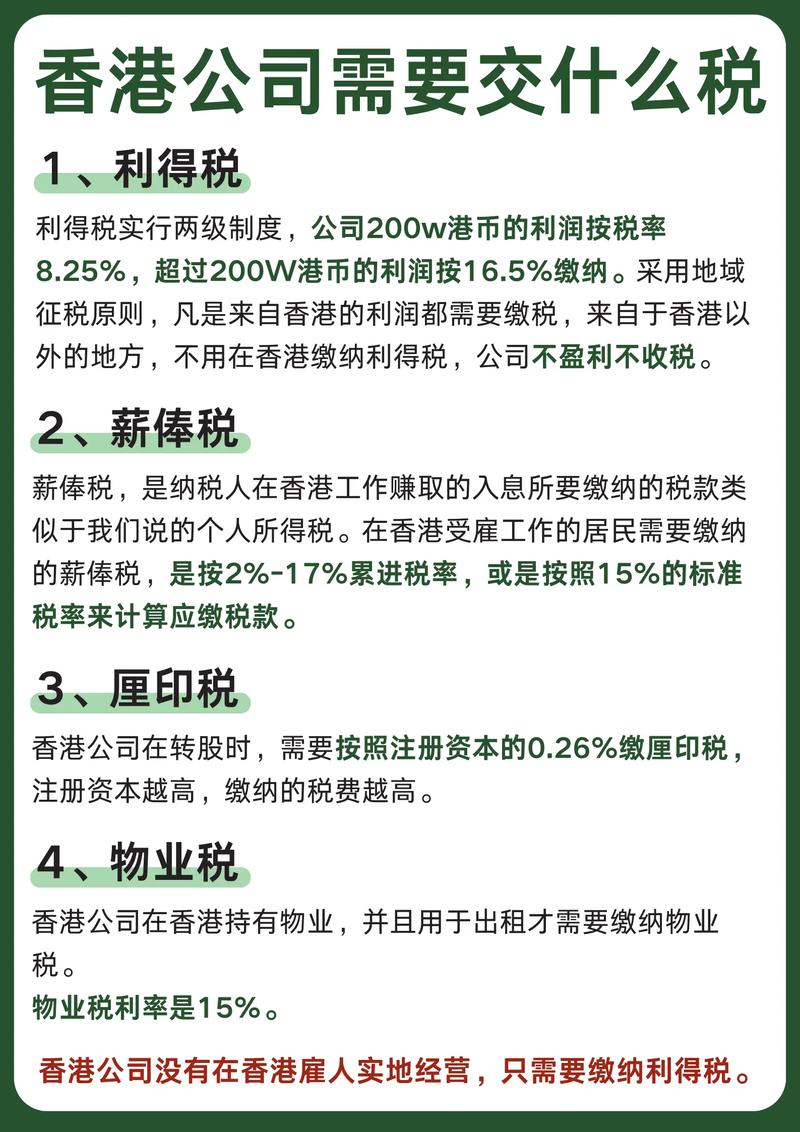 三个实在好处省税。 这是最直接的。内地分红,25%企业所得税+20%分红个税,到手打六折。有香港身份,合规把业务跟香港挂上钩,利得税前200万只收8.25%。做外贸、跨境、供应链的,一年省辆车很正常。