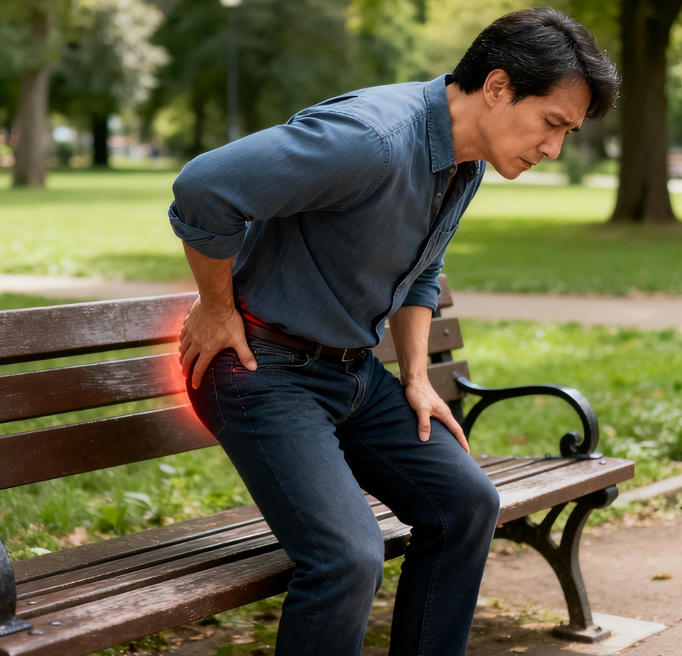 周末上午的小区花园,阳光正好,张阿姨正慢悠悠遛弯,远远看见邻居老陈捂着屁股,皱着眉坐在长椅上,没了往日打太极的精气神。