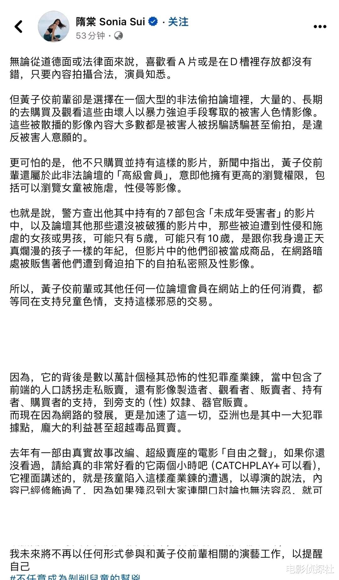 但侦办过程中检方发现其个人硬盘里有多部未成年少女不雅片,黄子佼称在2013年注册偷拍论坛账号,并写下千字忏悔书道歉。