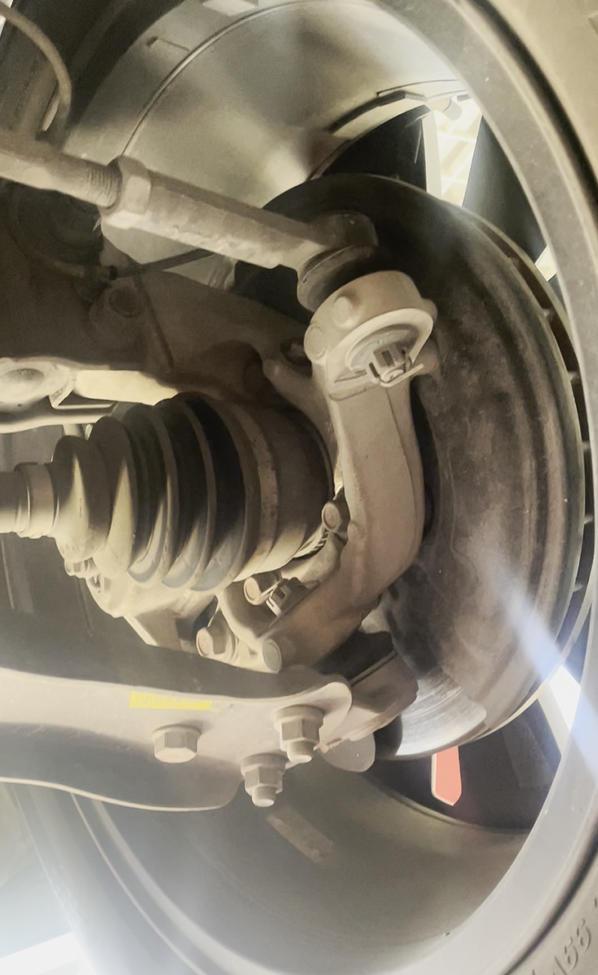 底盘缓缓地升起来,直奔右边来,一眼就看到了下支臂上面的副厂标签,这是托底更换了吗?