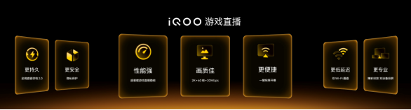 iQOO 15 的游戏直播助手全面升级,支持最高2K+60帧+20Mbps 以上的超高清游戏投屏直播,并持续与抖音深度合作,行业首发“一键投屏开播”,两步即开播;支持原生 144帧+极致画质直播,超高负载下的表现更强悍;高光时刻自动录制,自动记录用户每个游戏高光时刻。
