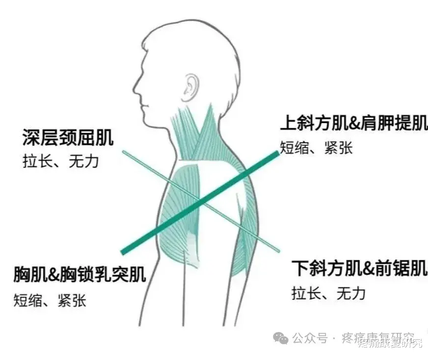 根据病变部位分为上交叉综合征(颈胸结合部)和下交叉综合征(腰骶结合部),因肌群呈交叉式不平衡状态得名。
